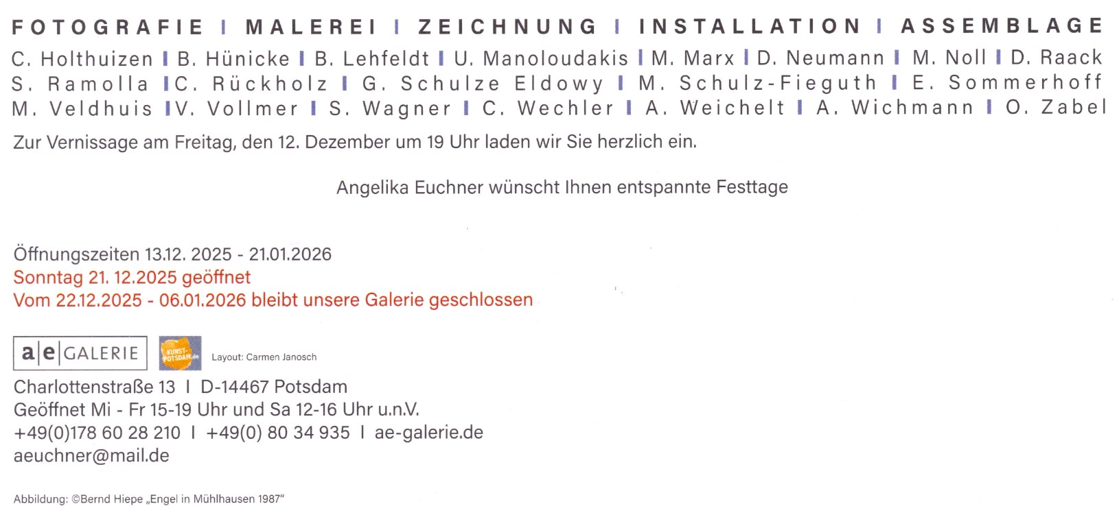 2025 - Ausstellung ENGEL m/w/d - WO SEID IHR?, Potsdam, 13.12.2025 – 21.01.2026